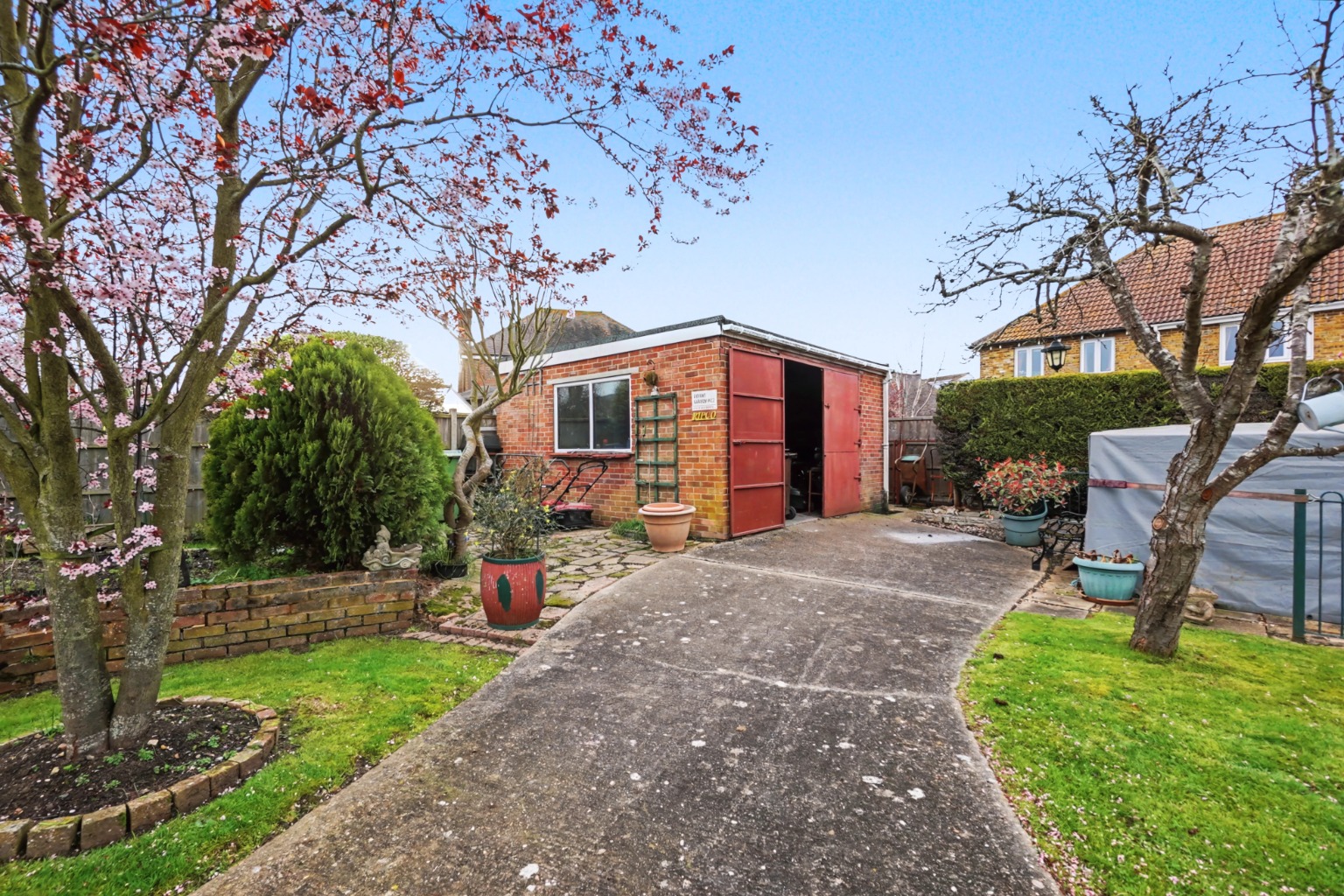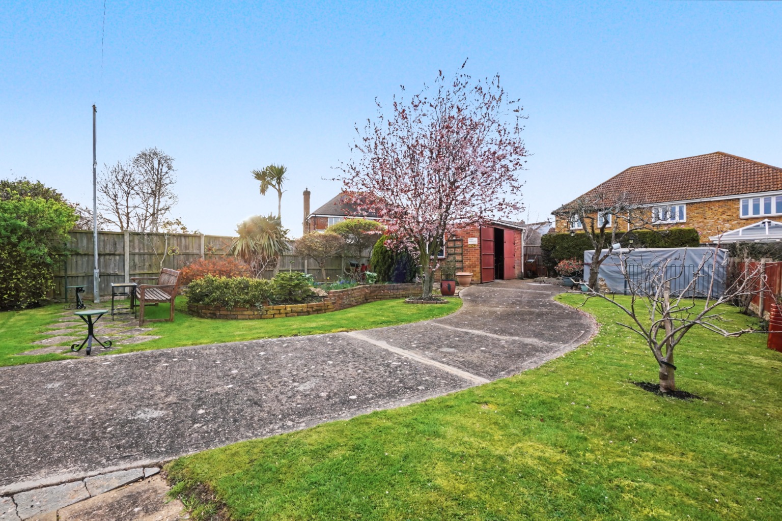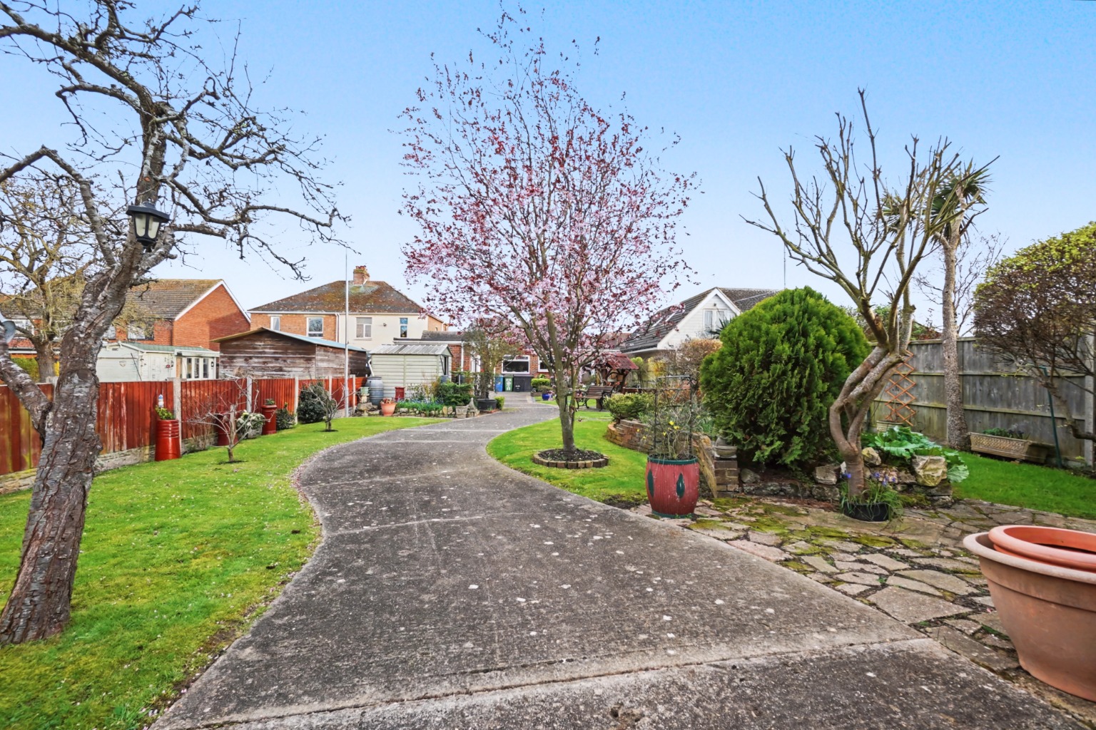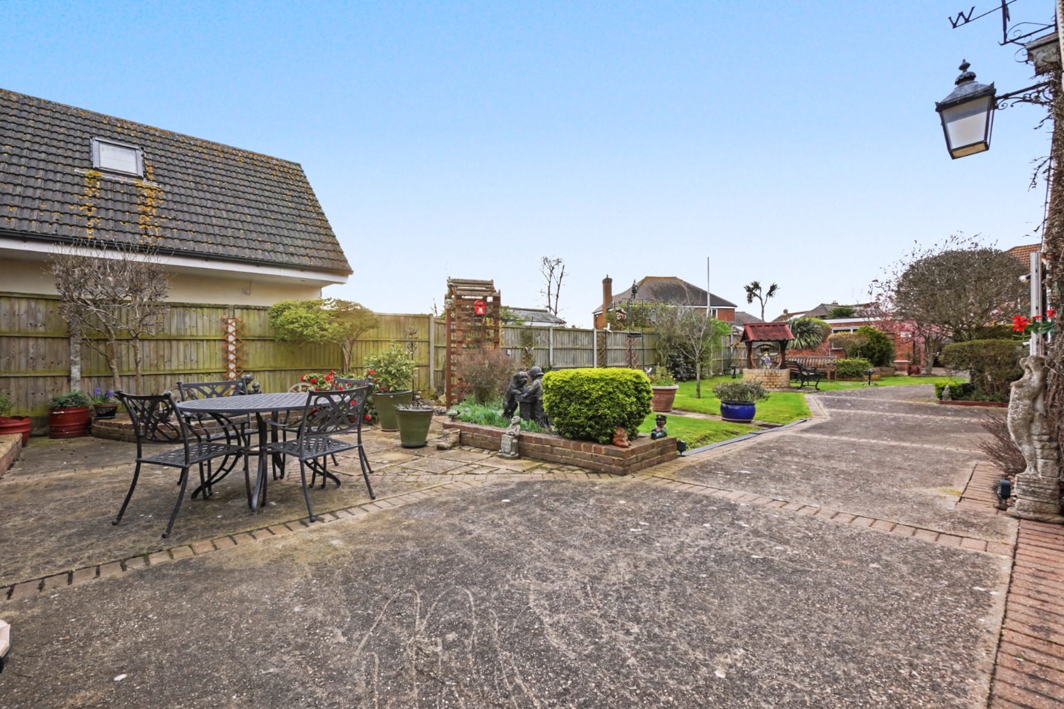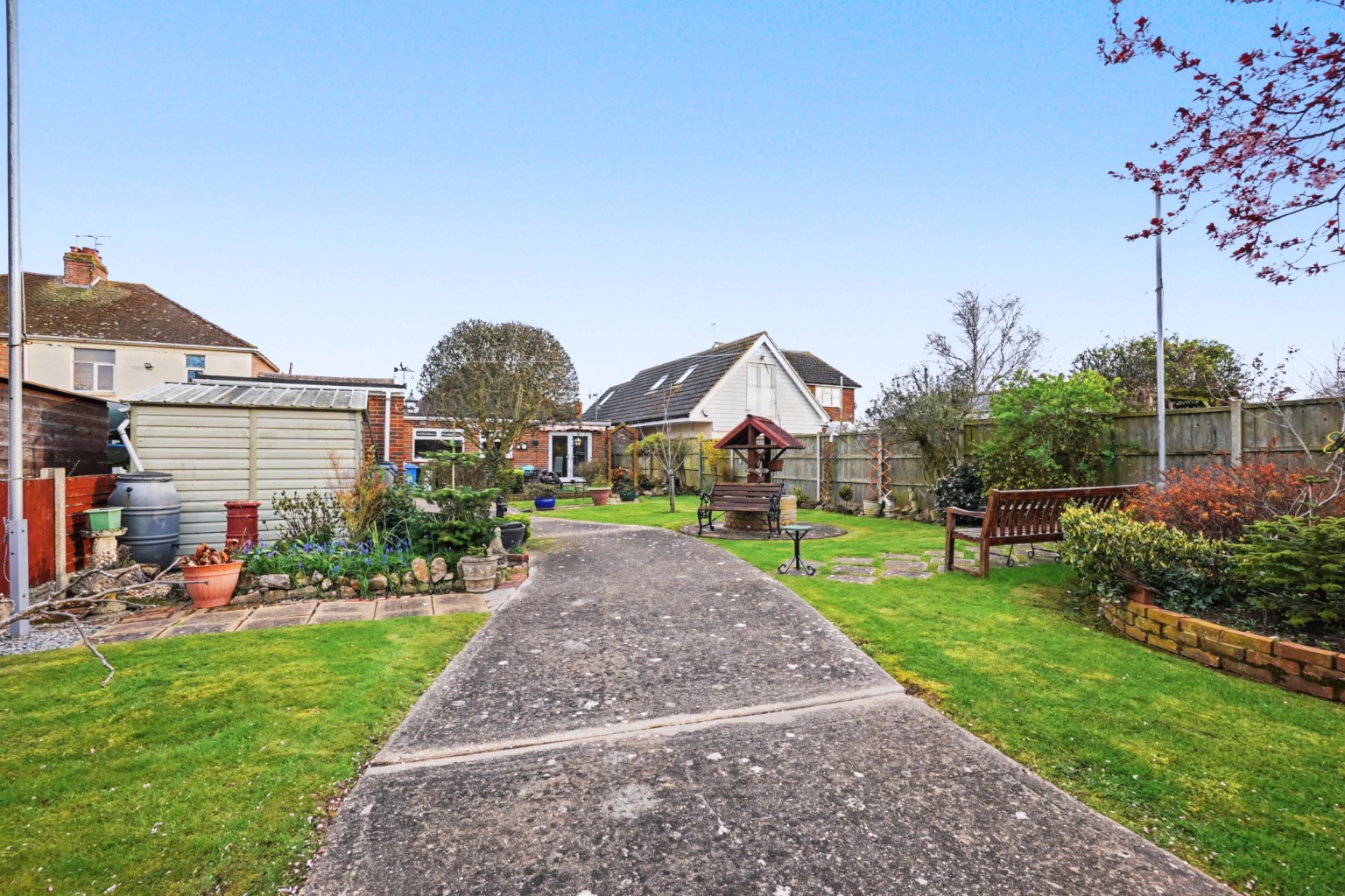 Large attractive landscaped Westerly aspect garden