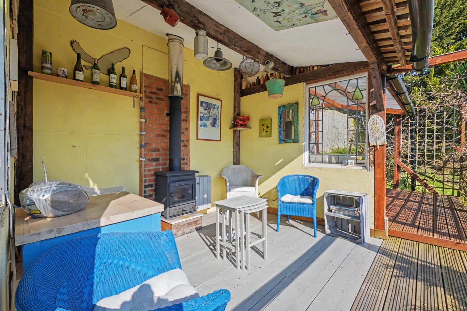 Stunning Outdoor Seating Area with Log Burner, Perfect for Summer Evenings and Crisp Winter Sun