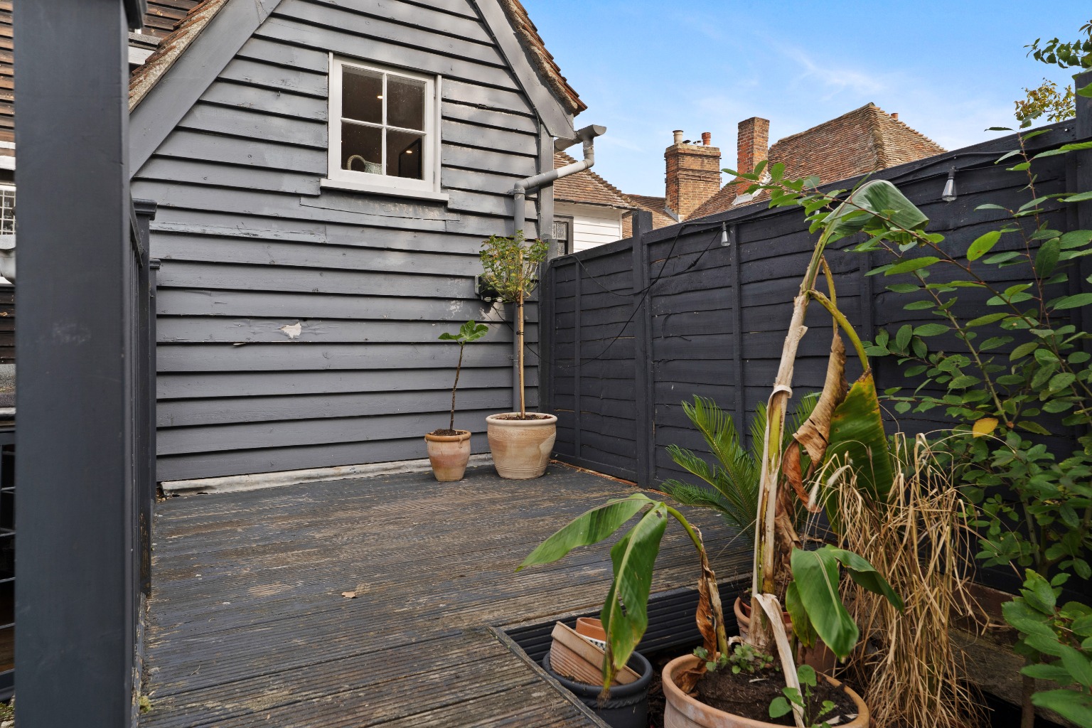 Pretty courtyard garden with roof terrace and parking space if desired